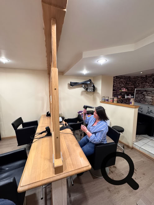 En entrant vous trouverez un vestiaire pour déposer votre manteau,. Il faudra traverser le salon pour s’assoir sur l’un des deux emplacements massants pour les shampoings. Une fois les cheveux propres, seront accessibles les quatre emplacements pour la prestation souhaitée.